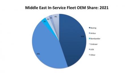 Boeing and Airbus will continue to dominate the Middle East market, making up a combined 89% of the in-service fleet by 2021.