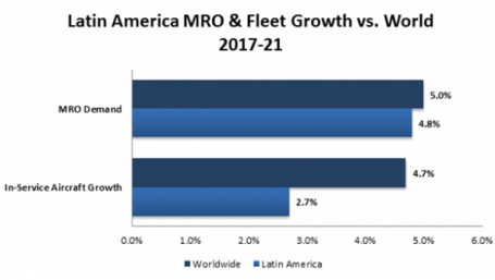 Through this five-year period, MRO demand in Latin American is expected to reach over $21.4 billion; growing at a 4.8% compound annual growth (CAGR).