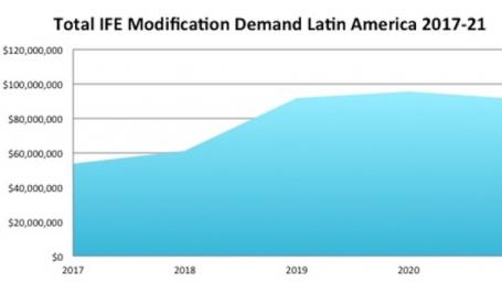 In-Flight-Entertainment (IFE) modifications demand in Latin American is expected to reach more than $626 million over the next five years; this sector will continue to grow at a 11.2% CAGR through 2021.