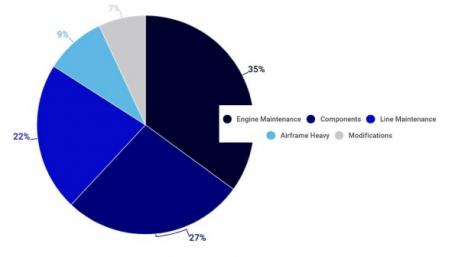 Over the next decade, Eastern European MRO demand is expected to reach over $37 billion. Engine maintenance will have the majority share at 35%, followed by components at 27%.