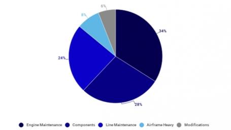 Over the next decade, the North American MRO demand is expected to reach more than $209 billion. Engine maintenance will have the majority at 34%, followed by components at 28%.