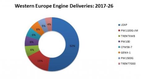 Over the next decade, engine deliveries for Western Europe are expected to reach over 38,000.