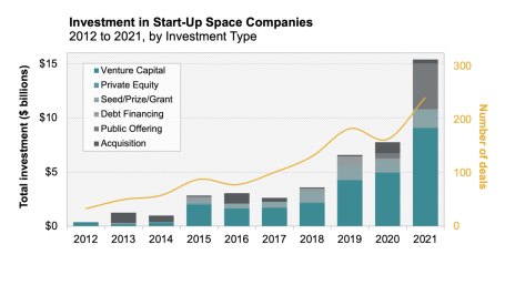 Startup space companies raised $15.4 billion in total financing in 2021, double the amount raised in 2020.
