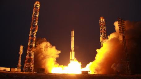 Roscosmos Space Corp. launched a Proton-M heavy rocket with two Russian communication satellites from Baikonur spaceport in Kazakhstan at 7:07 a.m. on Dec. 13.