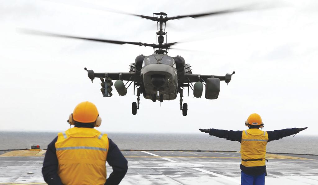Russian has begun tests of its Ka-52K naval attack helicopter despite uncertainty over delivery of French-built Mistral helicopter carriers from which they are intended to operate. Visiting Russian Helicopters Progress Arseniev plant, Deputy Defense Minister Yuri Borisov reconfirmed plans to order 32 Ka-52Ks. Credit: Russian Helicopters