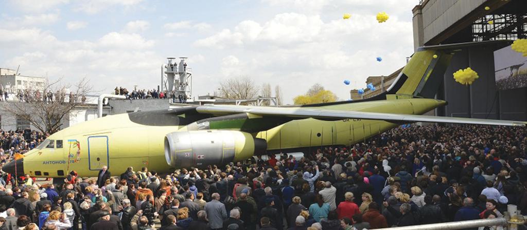 Antonov rolled out the An-178 transport aircraft on April 16 in Kiev. First flight is planned for early May. The airlifter is derived from the An-148 regional jet, with a rear cargo ramp, reinforced landing gear and uprated Ivchenko D-436 turbofans. In February, UAE-based freight carrier Maximus Air signed a letter of intent for An-178s.