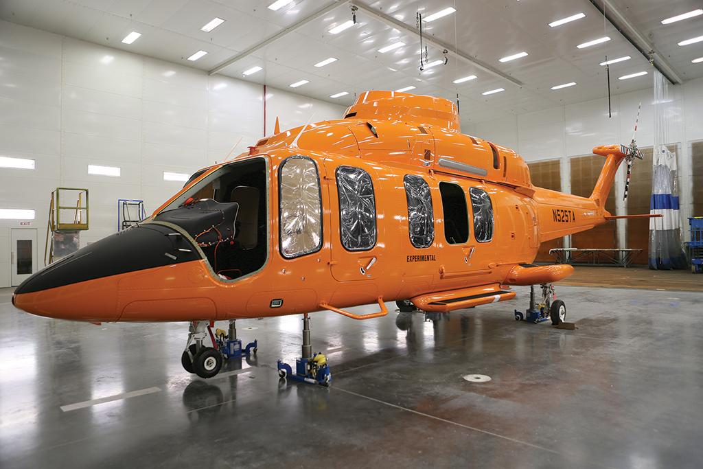 To ensure its Model 525 super-medium helicopter will not be missed when it makes its first flight, Bell has painted first prototype FTV1 bright orange. FTV1 is largely complete and awaiting installation of its five-blade main rotor system in preparation for ground runs and a first flight, likely to take place in the next couple of months.
