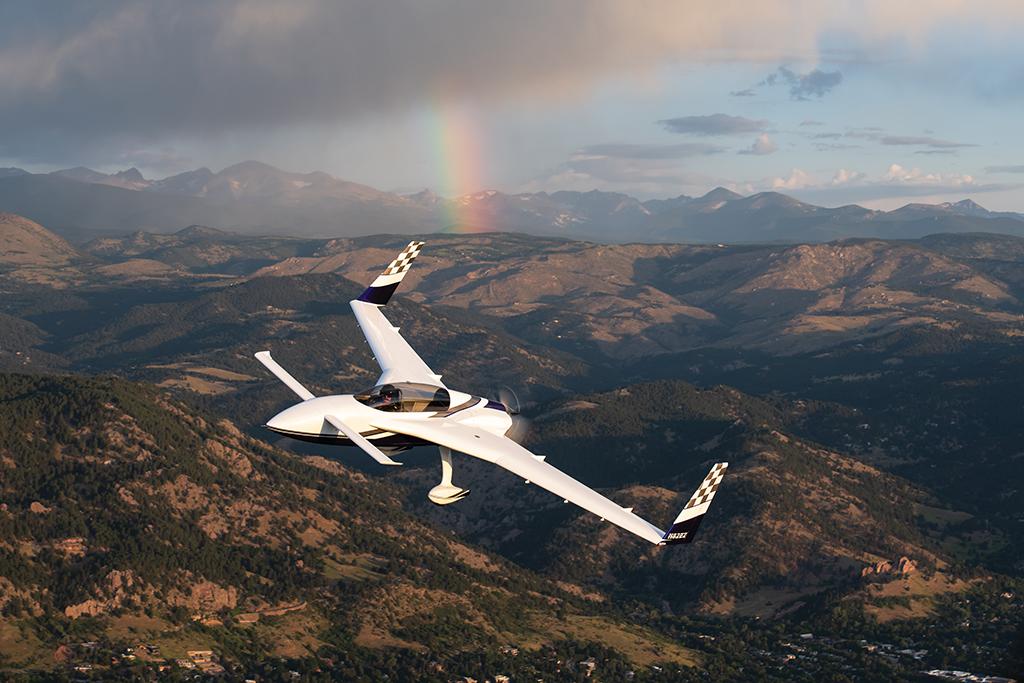 Mother Nature provided quite a backdrop during this stunning sunrise photo shoot. Several minutes into the flight, the rainbow appeared and added another dynamic dimension to the landscape as Allen Floyd piloted his Rutan Model 61 Long-EZ, which he has named “Excalibur,” along the Front Range of the Rocky Mountains.