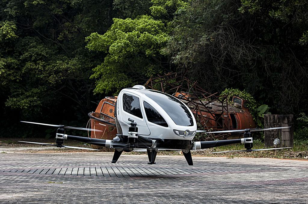 Chinese drone-maker Ehang unveiled the single-seat Ehang 184 at the Consumer Electronics Show in early 2016 in Las Vega, and says it has flown more than 20 of the autonomous vehicles during development. This includes test flights in Dubai and initial flights of the unmanned aircraft with a passenger on board. Goals are a flight time of 25 min. at 100 kph carrying a 120-kg (265-lb.) payload.