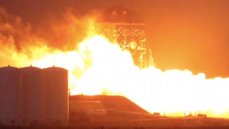 SpaceX ignited a methane-burning Raptor engine attached to the base of its prototype Starship vehicle on April 3.