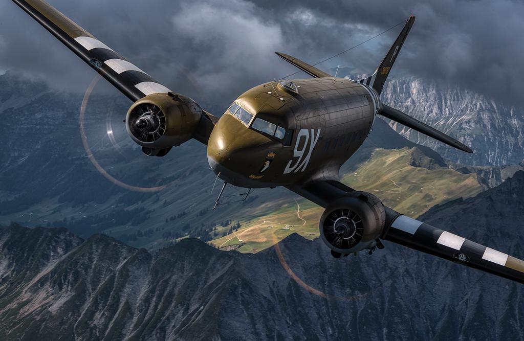 A Mathys Aviation C-47 is en route to St. Stephan Airfield in Switzerland, just ahead of a major storm front.