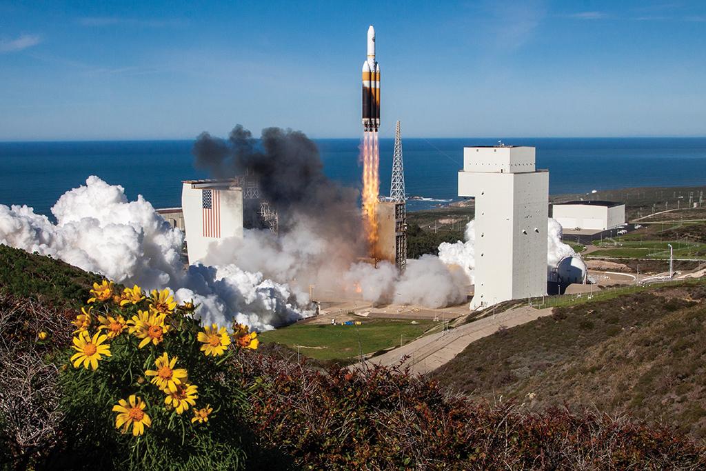 A United Launch Alliance Delta IV Heavy lifts off from Space Launch Complex 6 at Vandenberg AFB, California, with the NROL-71 mission for the National Reconnaissance Office.