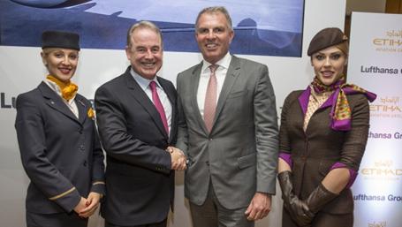 Etihad and Lufthansa signed a multi-faceted commercial partnership agreement Wednesday that will see the two companies cooperate via codeshares and across catering and MRO services.