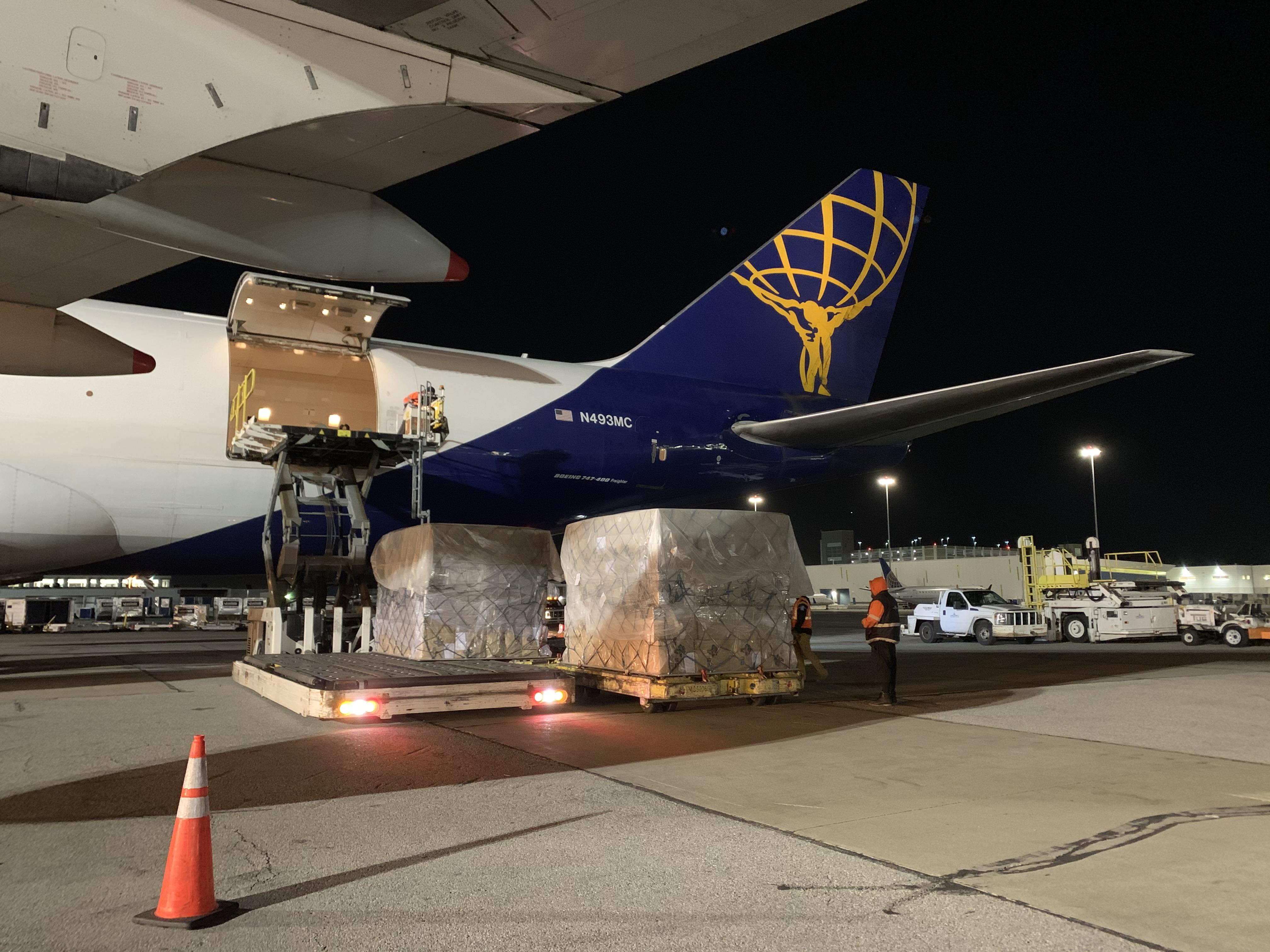 On March 29, Atlas Air operated the first flight for Project Airbridge from Shanghai, China into New York JFK. The flight carried 130,000 N-95 masks; nearly 1.8 million surgical masks and gowns; more than 10.3 million gloves; and more than 70,000 thermometers. The supplies will be distributed primarily to New York, New Jersey, and Connecticut hospitals, with the remainder designated for nursing homes in the area, as well as other high-risk areas across the country.