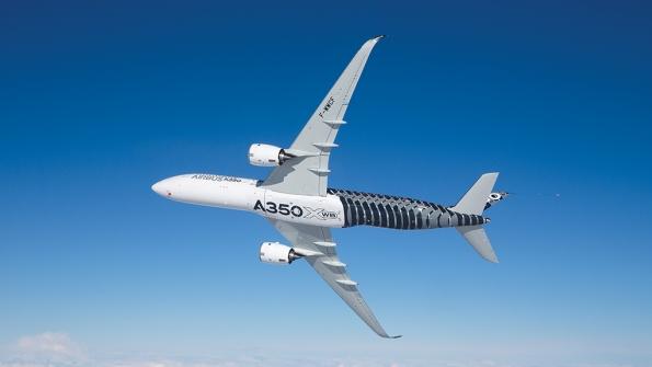 Airbus experimental test pilot Captain Frank Chapman flew his dynamic Paris Air Show demonstration routine in the Airbus A350 as it made its EAA AirVenture debut on Monday. A350-941, MSN002, has a striking white and black paint scheme with half of the aircraft decorated with a coarse, dark fabric...