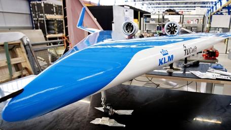 With backing from KLM Royal Dutch Airlines, a scale flying model of an unconventional fuel-efficient long-haul airliner concept has made its debut at the airline’s 100th anniversary celebrations.