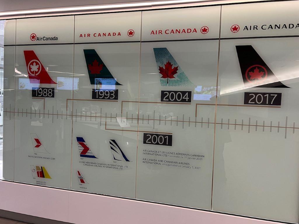 Inside Air Canada’s Călin Rovinescu Museum are photos of Air Canada’s branding and logo lineage.