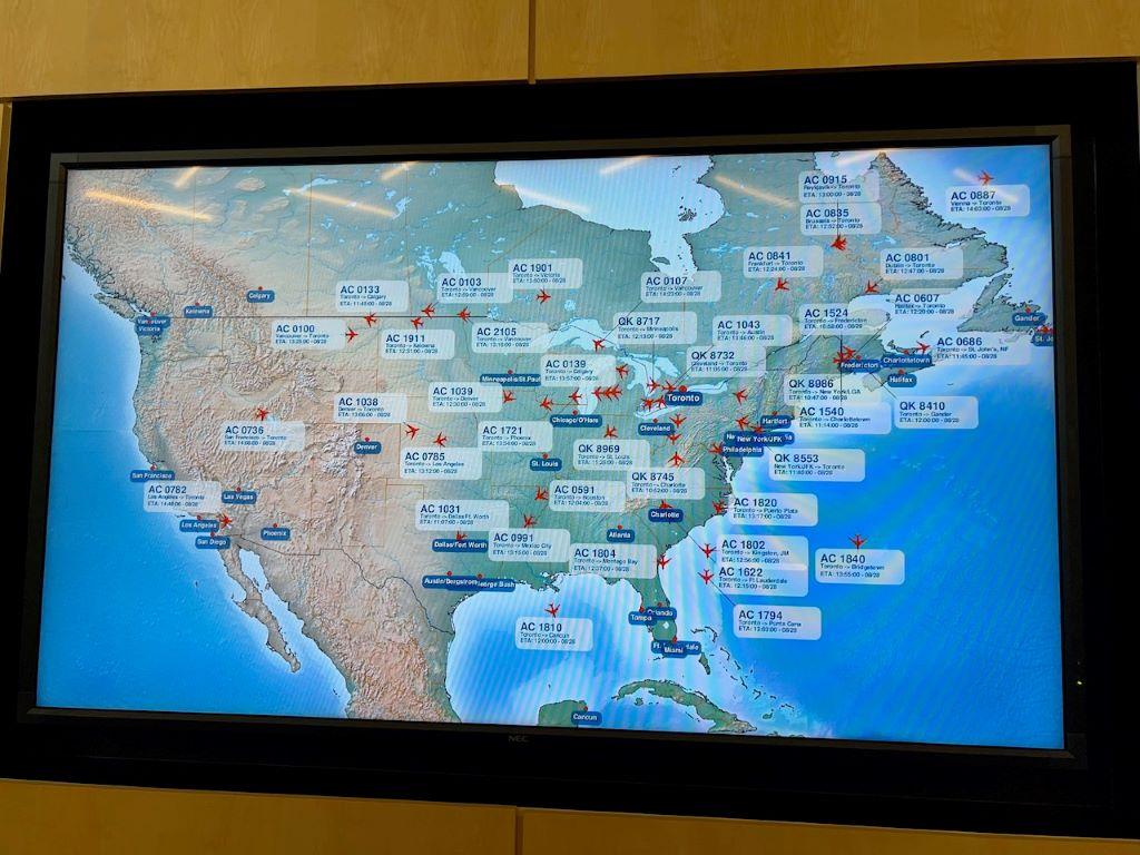 Air Canada’s real-time flight operations are seen on this real-time flight monitor on August 28, 2023.