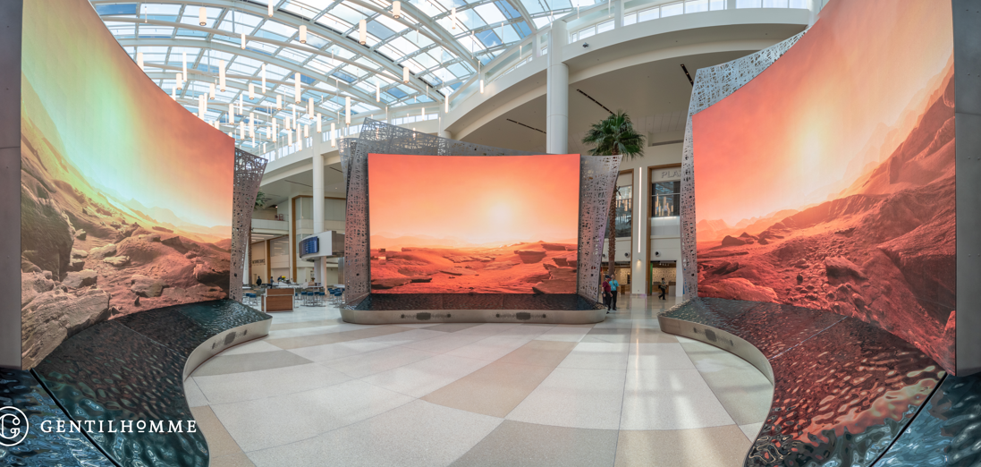 Orlando International Airport (MCO) opened a new terminal in September 2022, which offers travelers a unique multimedia experience created by Gentilhomme Studio with Sardi Design. Terminal C reveals impressive digital canvases within distinct architectural structures: the Moment Vault, Windows on Orlando and the future Portal.