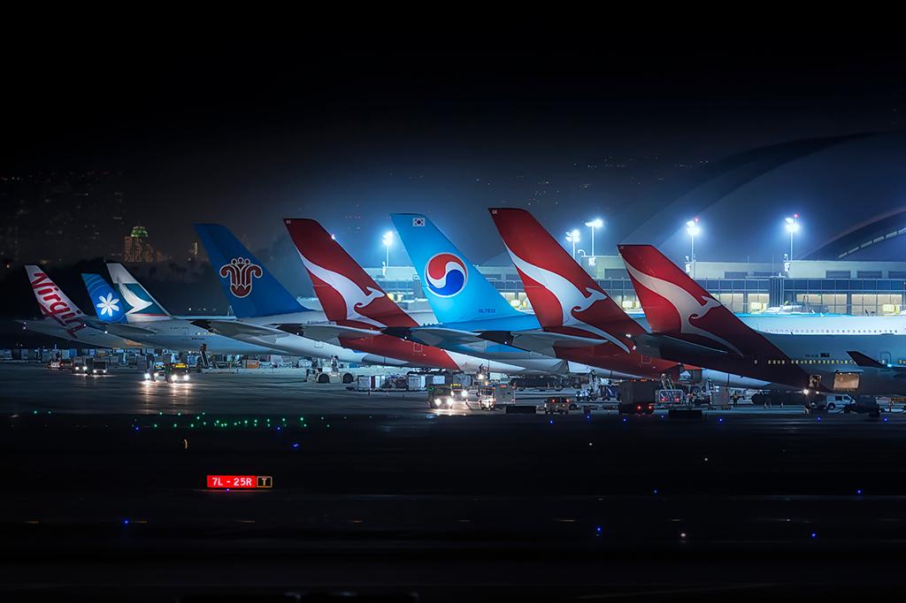 The nightly lineup on the ramp at Los Angeles International Airport.