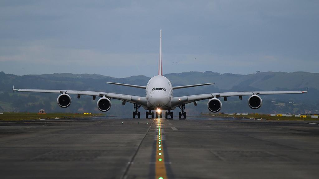 A giant not needing an introduction. Here she is, photographed head on, highlighting her presence with wings that reach the edges of the taxiway at Auckland International Airport on April 17.