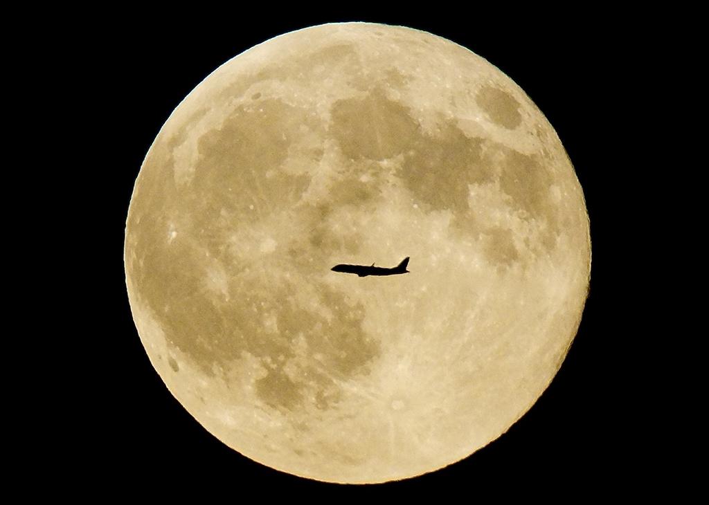 An airliner transits the Supermoon on Aug. 15, taken from Englewood Cliffs, New Jersey.