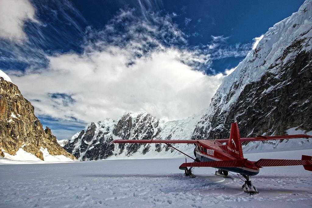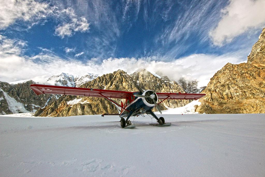 Beaver N8190Y in the West Fork of the Ruth Glacier, Mount Denali, Alaska.