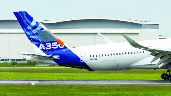 As further evidence that technologies for laminar-flow aerodynamic surfaces are moving closer to production, Airbus is testing hybrid laminar flow control (HLFC) on an A350 prototype. The system, visible on the leading edge of the vertical stabilizer, is designed to reduce drag and, therefore, fuel...