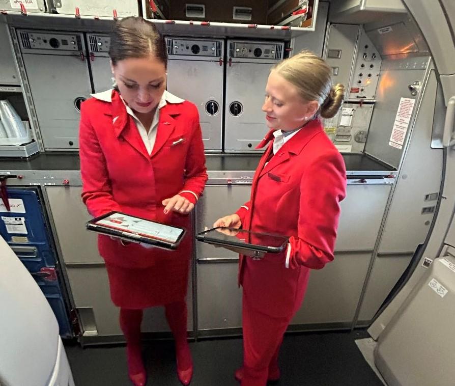 Vienna Airport, 5:30 a.m. local time. Austrian Airlines Captain and Airbus A320 Fleet Chief Andreas Radl and First Officer Magdalena Gruhn prepare for the day’s flight program. Using Electronic Flight Bags for their work, both pilots discuss the flight process in the briefing room at the airline’s head office at Vienna Airport. Gruhn will be the pilot flying on leg 1 (Vienna-Sofia) and leg 4 (Zadar-Vienna), while Radl will operate leg 2 (Sofia-Vienna) and leg 3 (Vienna-Zadar).