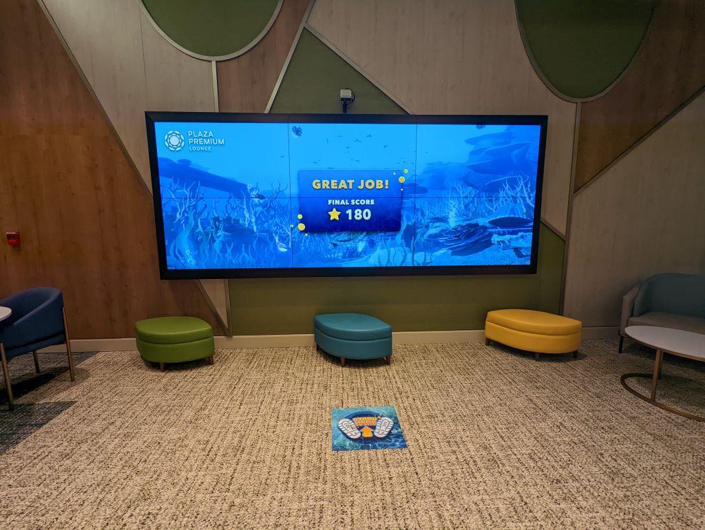 Plaza Premium Group’s new lounge in Terminal C at Orlando International Airport (MCO) offers a dedicated kids’ area that features an interactive gaming experience called Tasty Turtle Treats, which is a one-player interactive game where the player takes control of a turtle using an advanced interactive camera that uses the person as the controller. Turtle food falls from the top of the screen, and the player moves left to right to gobble up as much food as they can in the time limit. The game is brought to the newly opened lounge by a partnership with edgefactory and X Studios.