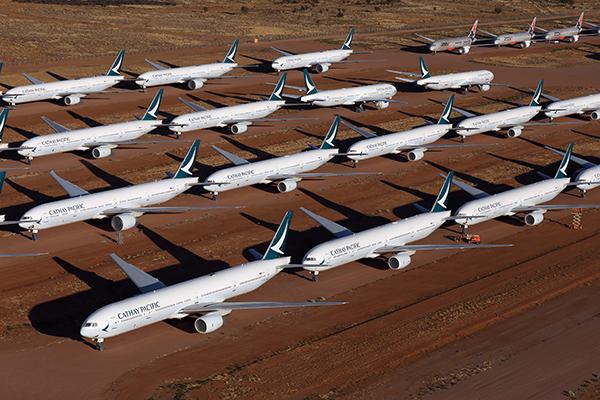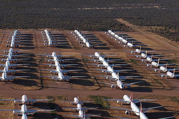 As ATW-Aviation Week photographer Rob Finlayson flew over the facility in a helicopter recently, he described seeing so many stowed aircraft as an “eerie sight.”