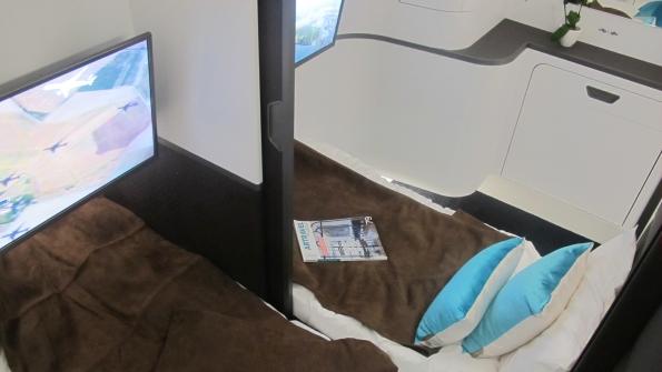 Airbus has made a prominent change to its Day & Night first-class concept, the “night” area of which now looks like a two-person bedroom. The idea, introduced last year, is to give the passenger both a seat and a private sleeping area. The small opening (displayed at last year’s show) that enabled...