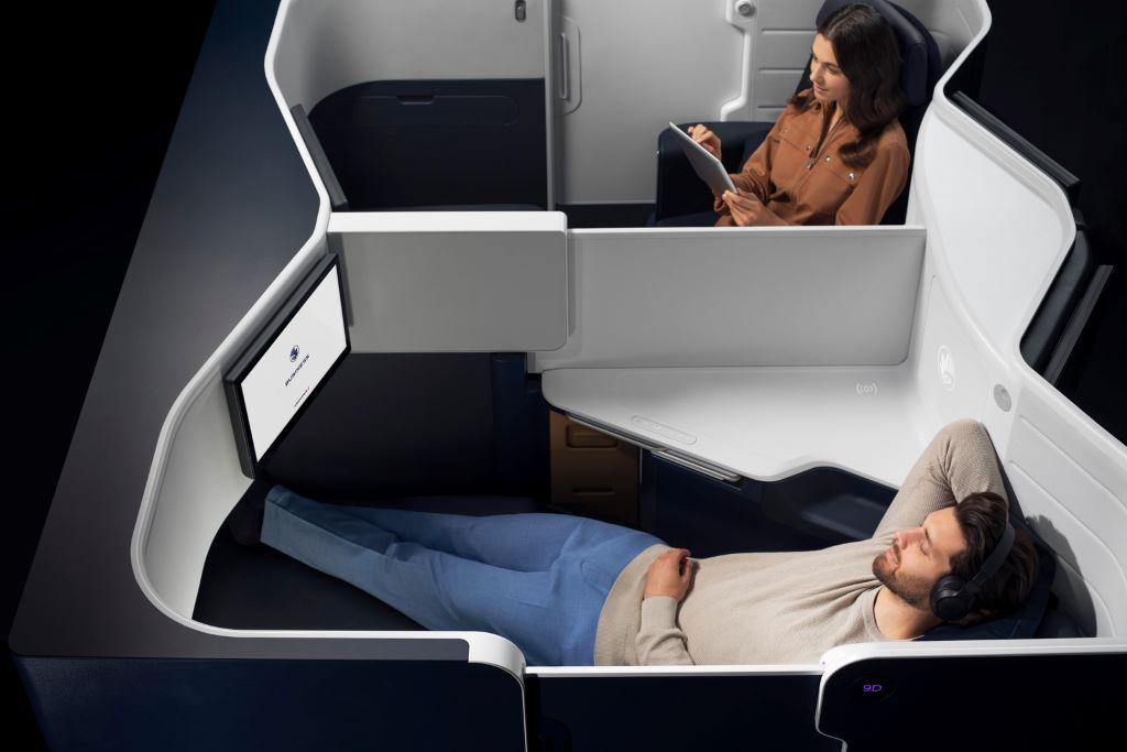In the Business cabin (48 seats), the airline’s completely redesigned iconic seat features even more enveloping curves and extra comfort. This seat’s design is based on the 3 “F”s – Full Flat, meaning that the seat transforms into a real bed almost two meters long, Full Access, providing all passengers direct access to the aisle, and Full Privacy, ensuring optimal privacy.
