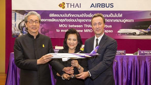 Airbus and Thai Airways International signed a memorandum of understanding (MOU) March 8 to jointly evaluate developing a new maintenance and overhaul (MRO) campus at U-Tapao International Airport in Rayong, Thailand. The MOU was signed by Airbus Commercial Aircraft president Fabrice Brégier and...