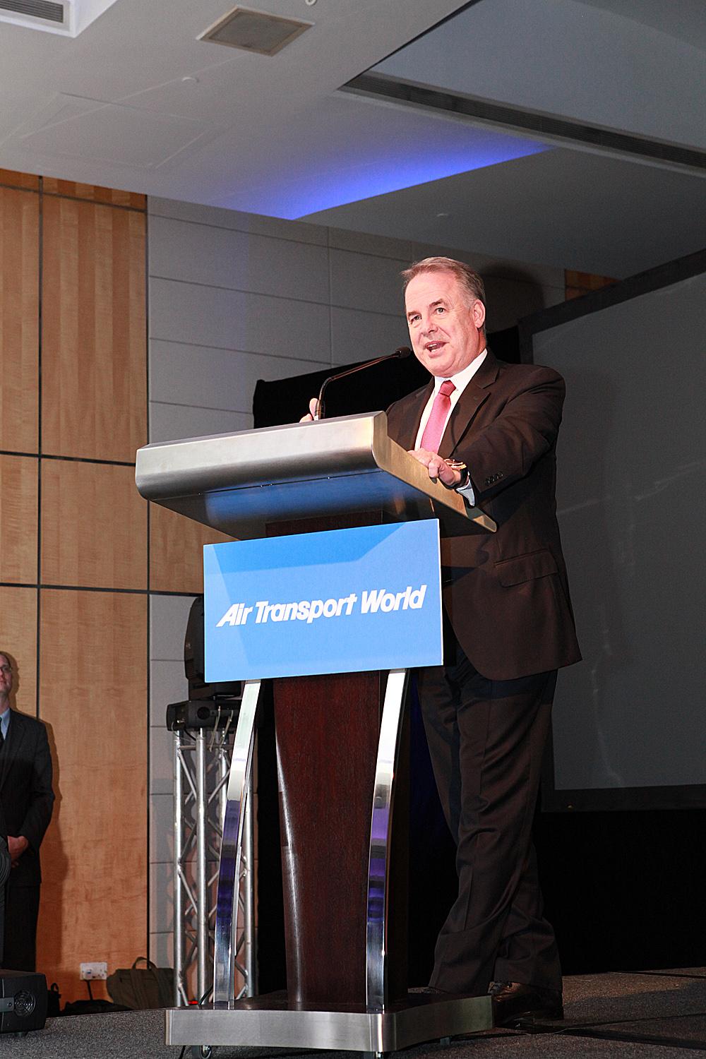 Etihad Airways CEO James Hogan accepts ATW's Airline Market Leadership award.