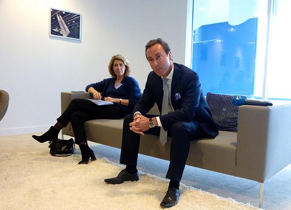 Airbus president and CEO Fabrice Bregier welcomes the crew.