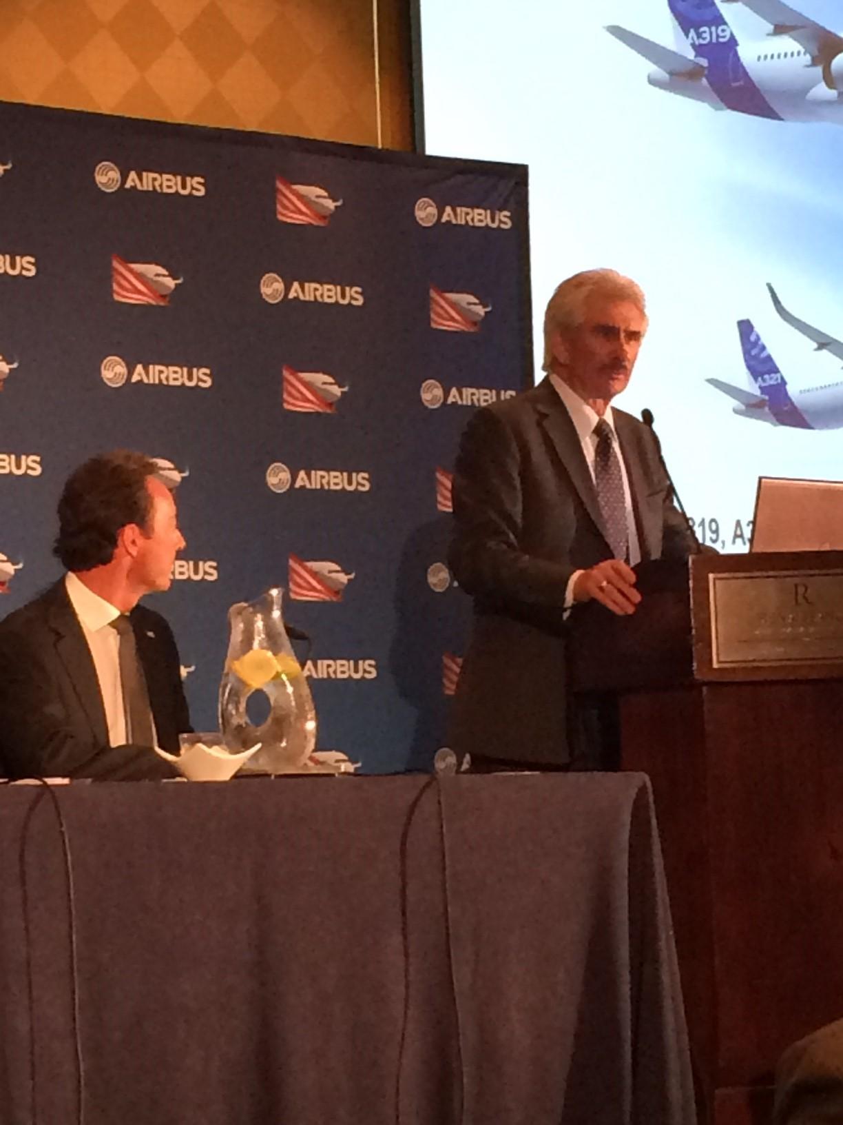 Airbus president & CEO Fabrice Brégier and Airbus Americas president Barry Eccleston during a media briefing at the Airbus Mobile FAL opening.