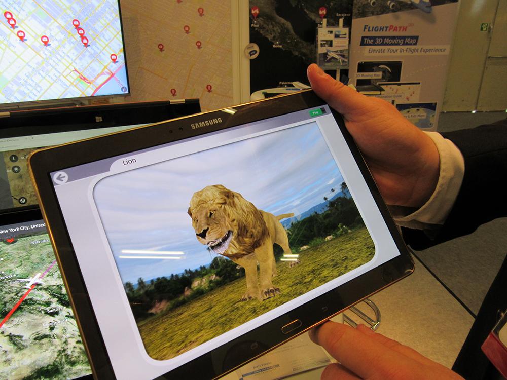 FlightPath3D, by Betria Interactive, is an interactive inflight moving map and entertainment system combined. As well as showing the flight route from multiple perspectives, it can zoom down to street level of destination cities, show local restaurants, or entertain the kids with information about animals or other features of destination regions. By Karen Walker