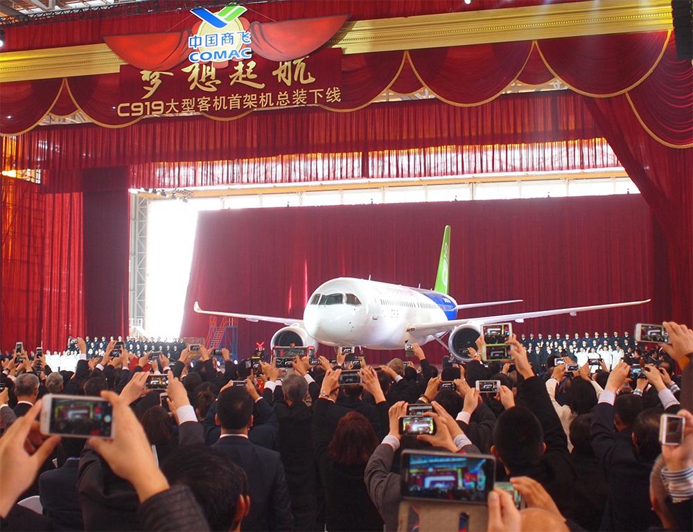 China’s first 158-seat Commercial Aircraft Corp. of China (COMAC) C919 prototype aircraft rolled off COMAC’s final assembly plant near Shanghai Pudong International Airport. Photos by Bradley Perrett