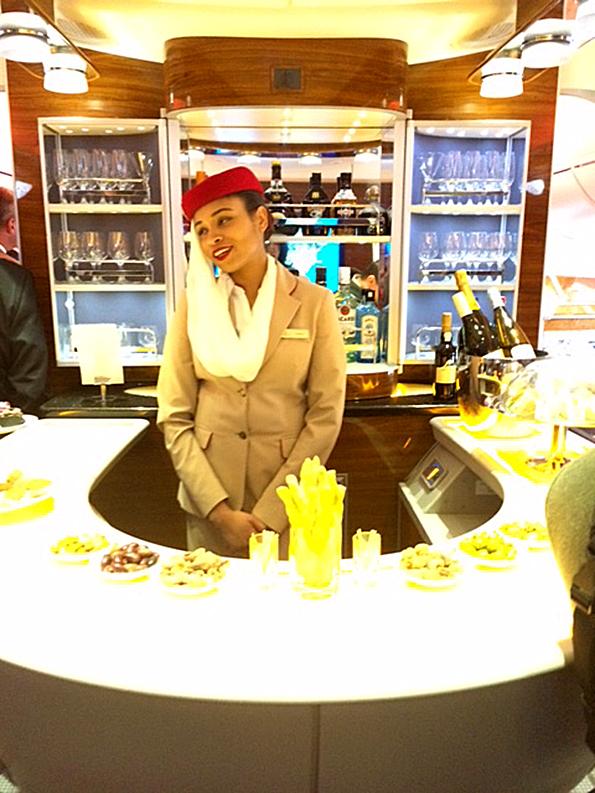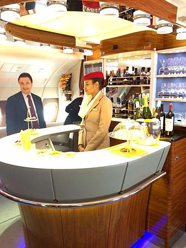 Emirates Airline marked the upgauging of its daily service between Dubai and Washington Dulles (IAD) Feb. 23 with ceremonies at IAD and VIP tours of one of its 76 Airbus A380s.