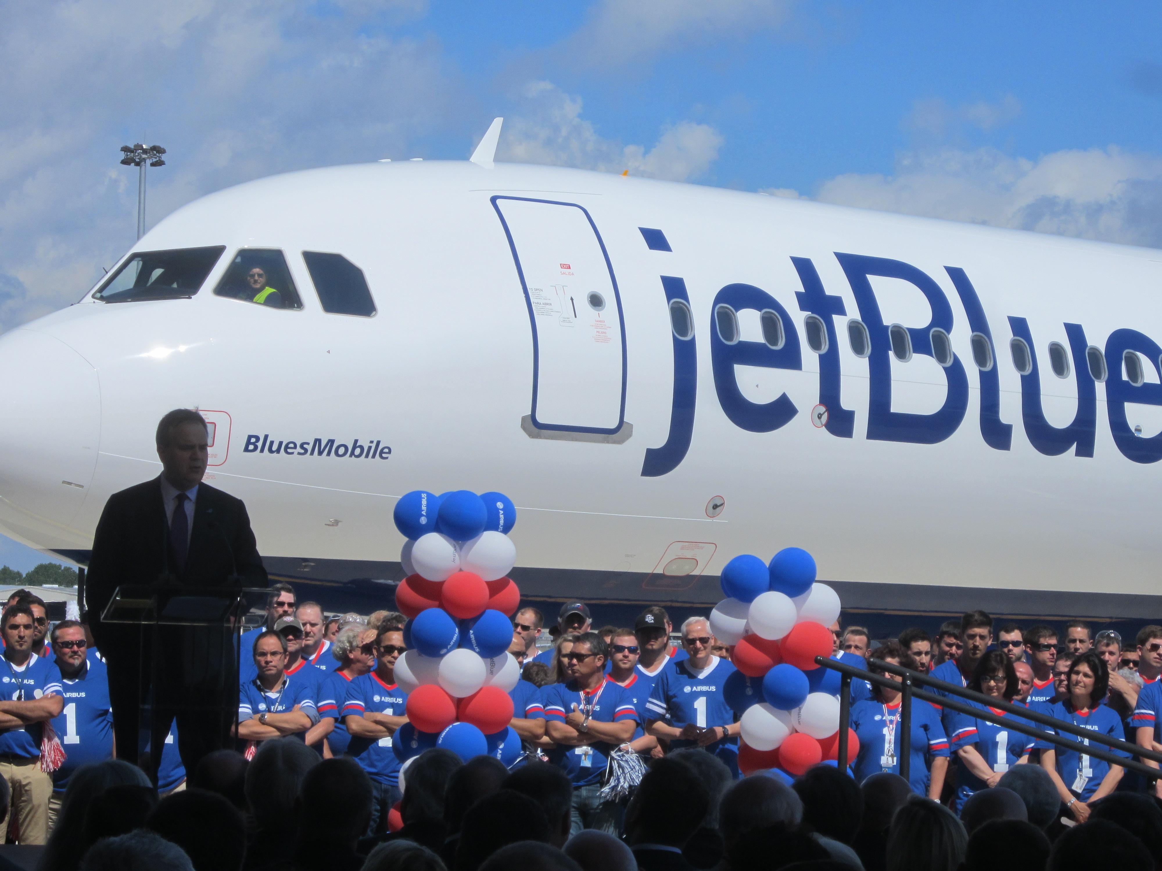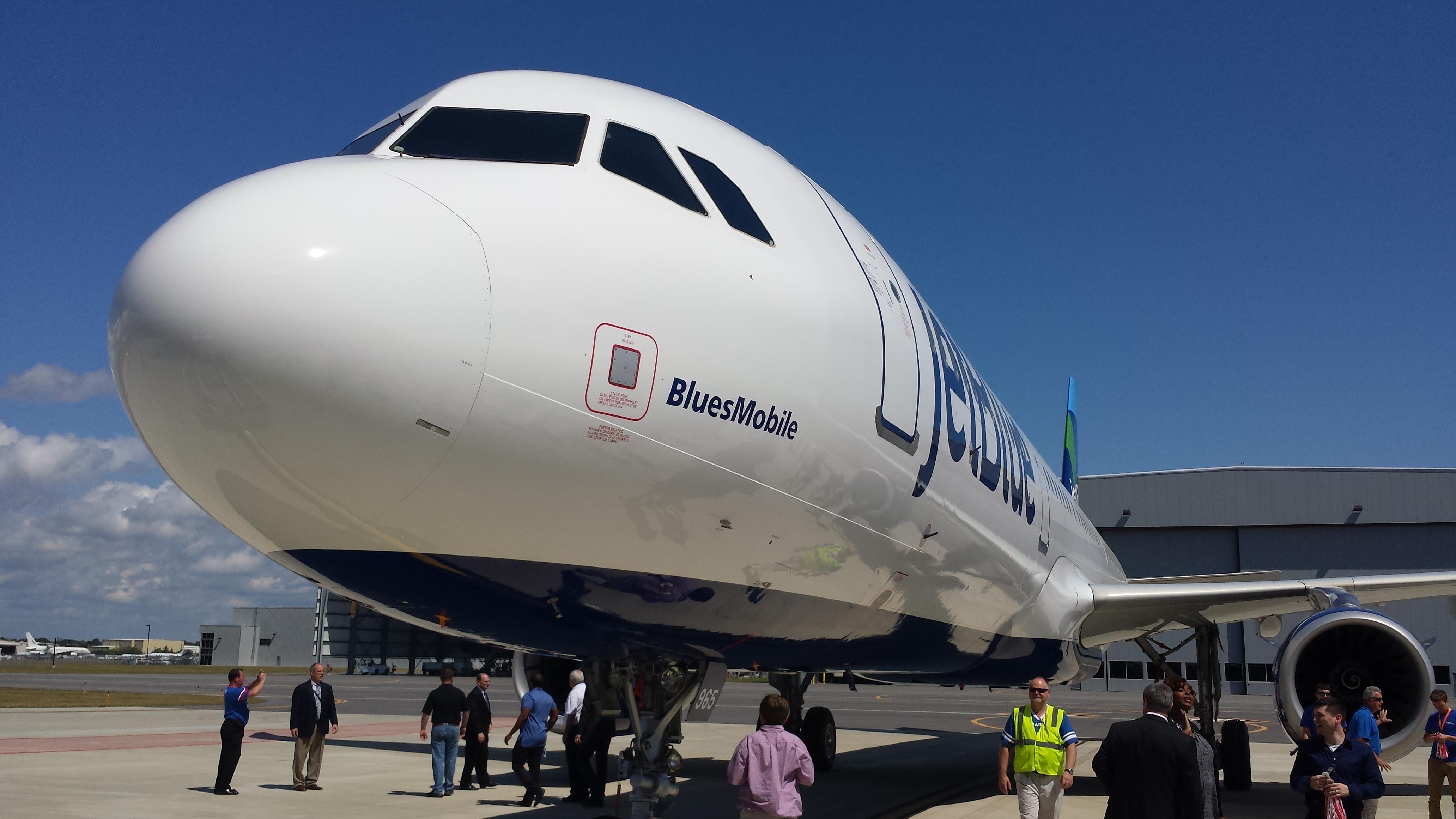 JetBlue's new US-built A321 on the tarmac at Airbus' Mobile, Alabama, US manufacturing facility