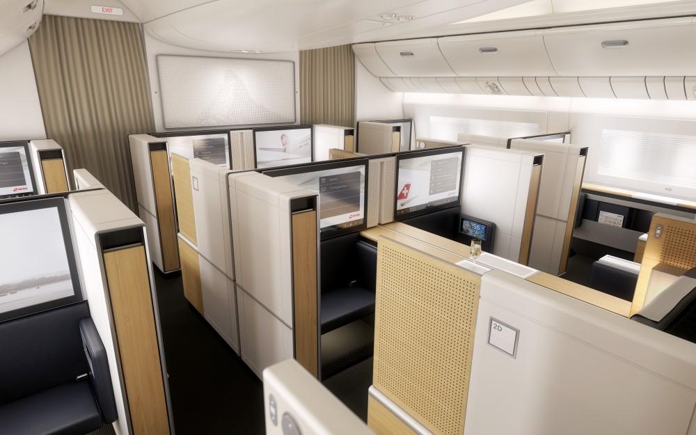 Lufthansa Group subsidiary Swiss International Air Lines (SWISS) has unveiled the new cabin layout of its new Boeing 777-300ERs, which will begin arriving in January 2016 through 2018. Pictured: Business class