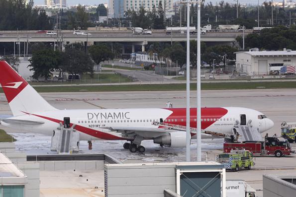 A Dynamic Airways Boeing 767-200 caught fire on a Fort Lauderdale-Hollywood (Florida) International Airport (FLL) taxiway as it was holding for takeoff to Caracas, Venezuela.