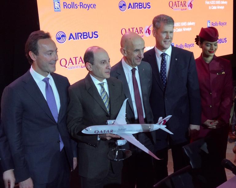Executive team Airbus CEO Fabrice Brégier, Qatar CEO Akbar Al Baker, former EADS CEO Louis Gallois and Rolls-Royce president-aerospace Tony Wood. ATW By Kurt Hofmann
