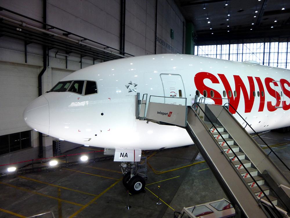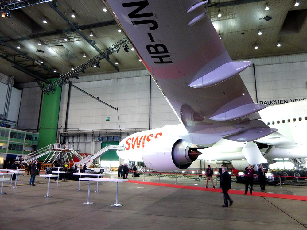 The Swiss 777-300 at the maintenance base in Zurich for the official presentation