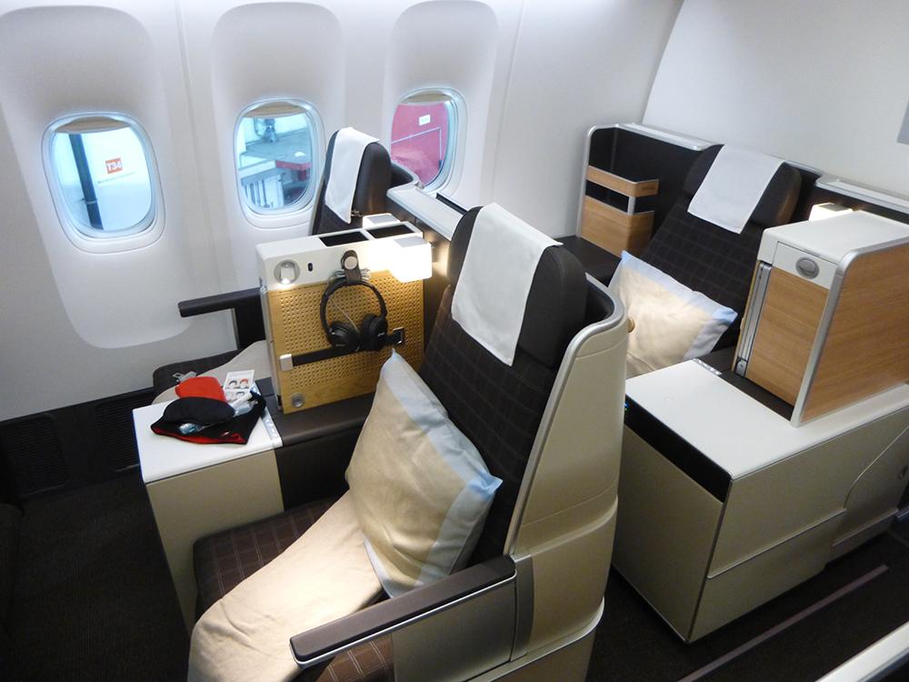 The first class lounge also offers a double bed sleeping room. On a clear day it has a beautiful view of the Alps.