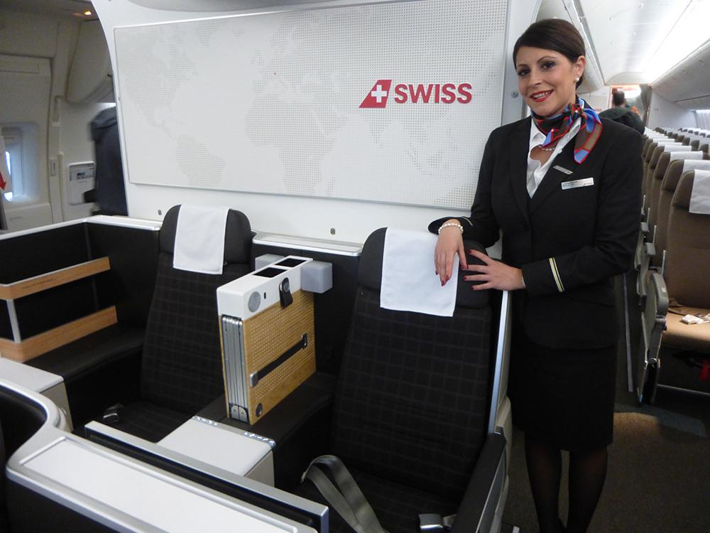 Flight attendants aboard the SWISS 777-300ER delivery flight.