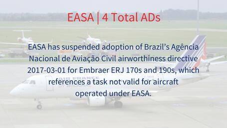 A rundown of the latest airworthiness directives from Australian, Brazilian, Canadian, European and U.S. regulators.