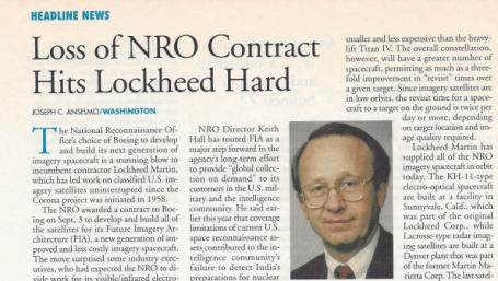 In September 1999, the National Reconnaissance Office dumped its incumbent imagery satellite contractor, Lockheed Martin, in favor of a bolder and less costly proposal led by Boeing.