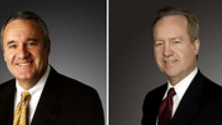 Bill Swanson (left), Raytheon's CEO and chairman, is scheduled to hand over the chief executive's office to current Chief Operating Officer Tom Kennedy on March 31. Swanson will remain chairman at least while the Waltham, Mass.-based defense prime contractor transitions to Kennedy's leadership.